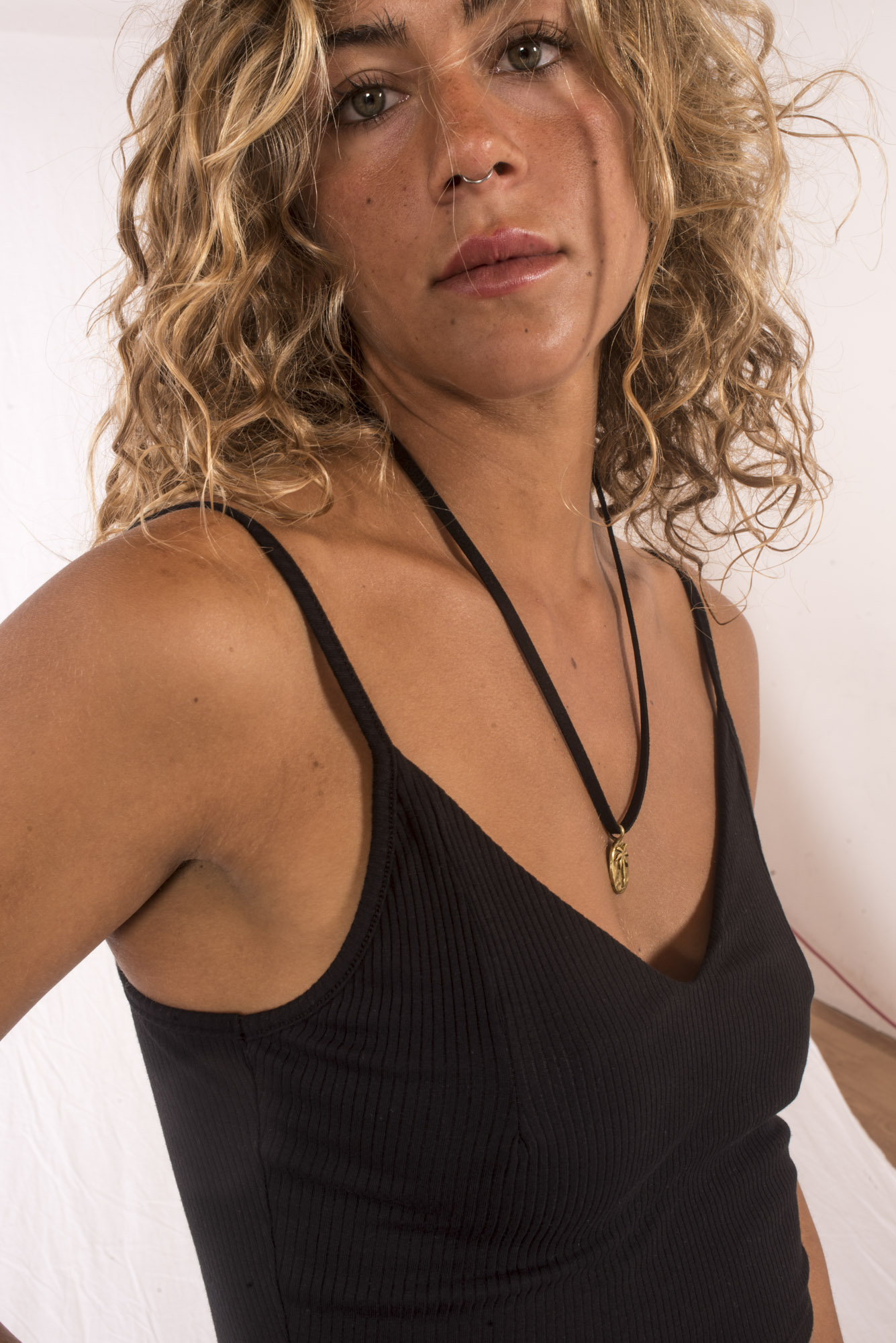 Top in cotone a costine colore Nero, piccolo patch logo Jungle cucito sul retro.