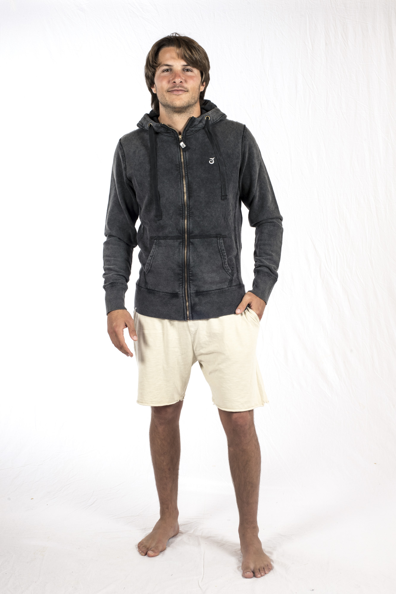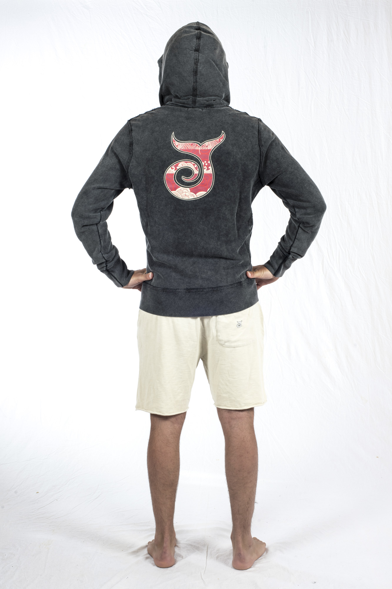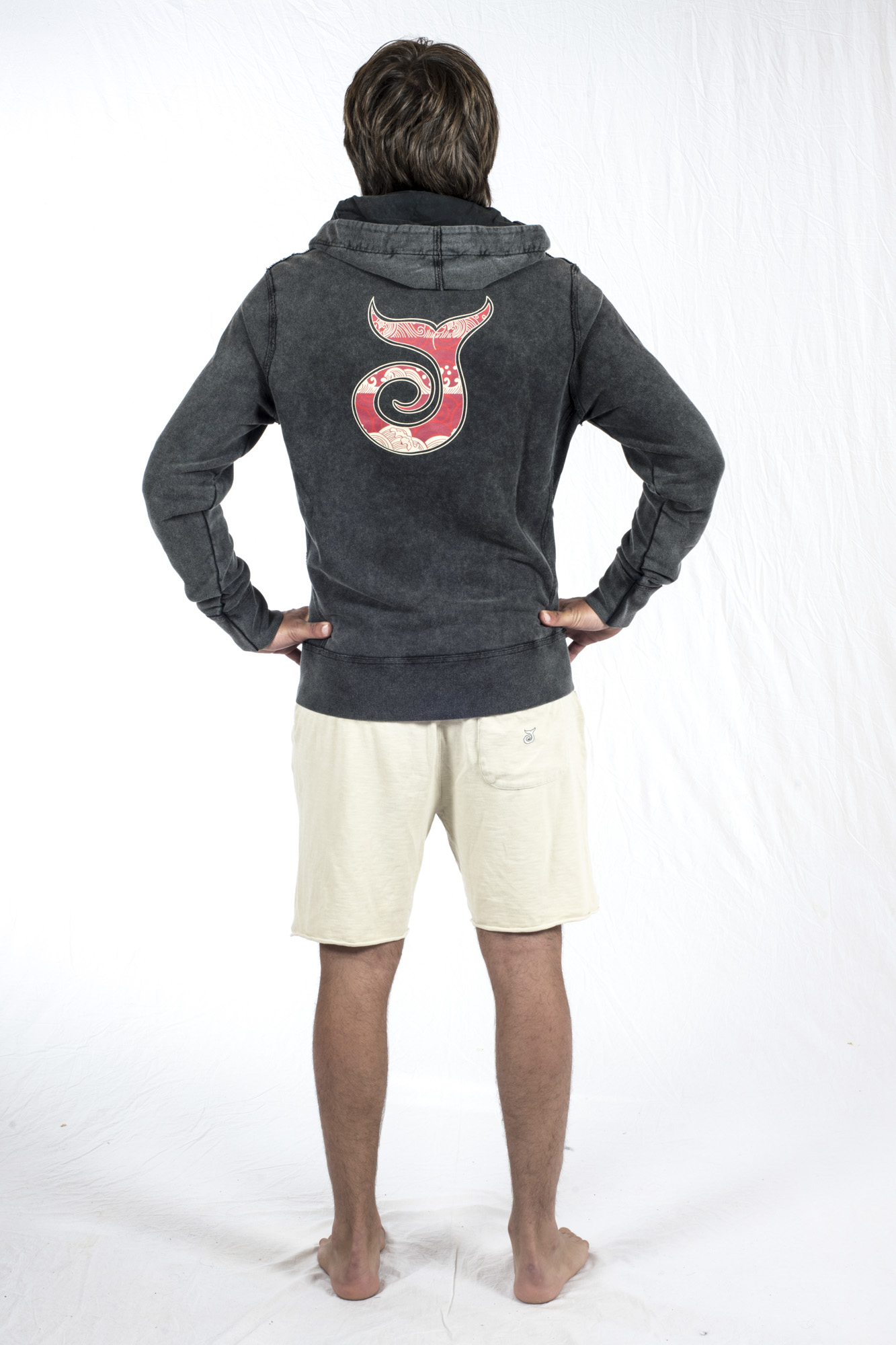 Felpa zip con cappuccio in cotone non garzato marmorizzato colore Nero, comode tasche per una capo accogliente e leggero. Logo Coda RedWave sul retro e piccolo bianco davanti, lato cuore.
