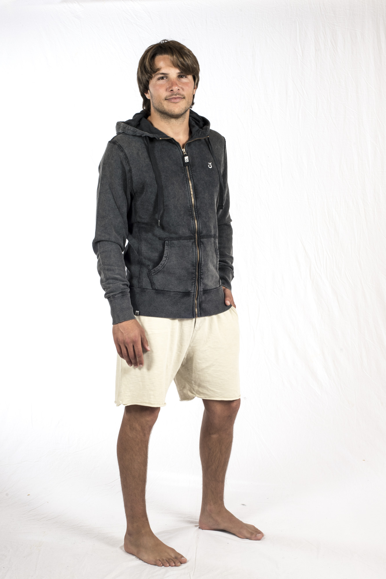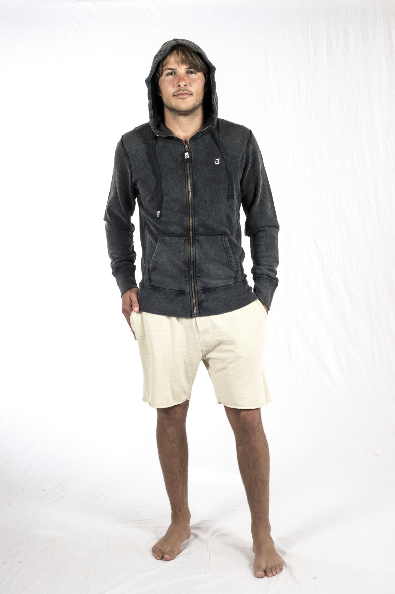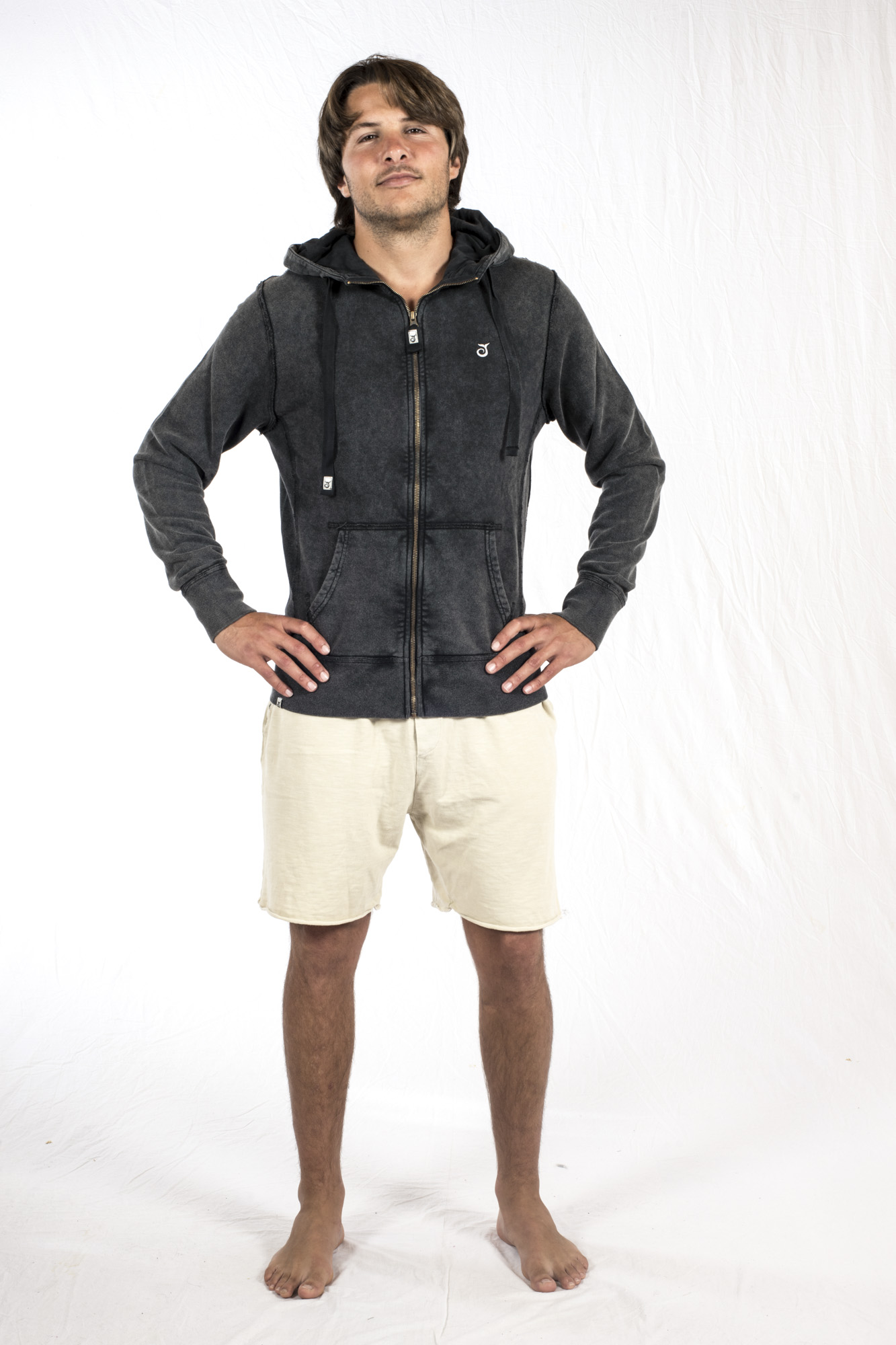 Felpa zip con cappuccio in cotone non garzato marmorizzato colore Nero, comode tasche per una capo accogliente e leggero. Logo Coda RedWave sul retro e piccolo bianco davanti, lato cuore.